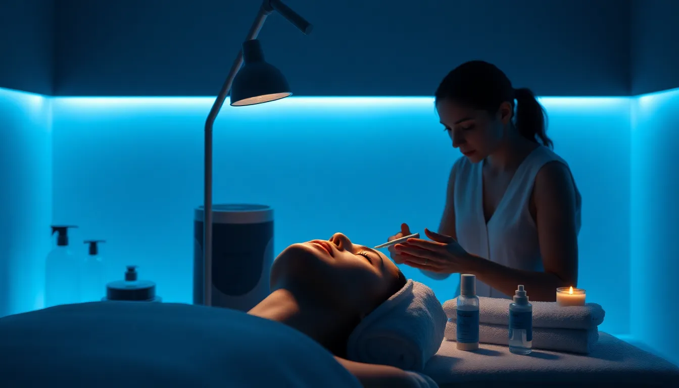 場所:施術ベッド。微弱電流を使い、ビタミンCなどの有効成分を肌の深部へ届けます。最後に冷却パックで鎮静させます。